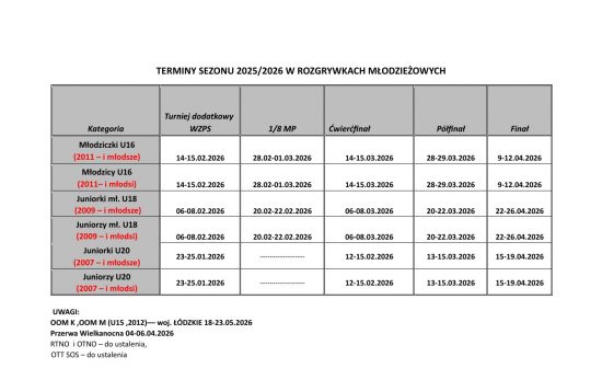 Terminarz rozgrywek młodzieżowych – aktualizacja
